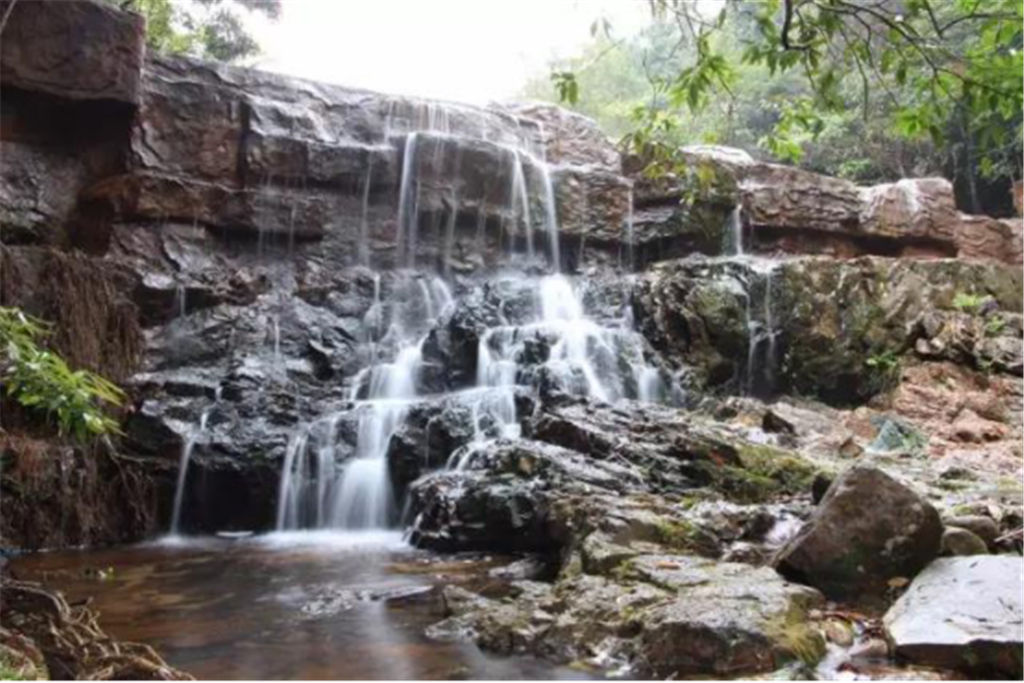 走進(jìn)山林200多米左右,我們便到達(dá)了牛郎織女橋。清澈的溪流,依稀可見魚兒在追逐嬉戲;徐徐山風(fēng)的吹過,更使人感到神清氣暢。要不是前面有更好的美景吸引著,我們真想就駐足在這里,投身于她的懷抱之中了。跨過牛郎織女橋,道路開始變得崎嶇,樹林也越來越茂密,雜花生樹,綠葉蔽日,使得原本并不見得寬的道路顯得更加狹小。 道路旁,一邊是林羅分布著的鐵柃格、湖榕木等數(shù)十種珍稀樹種,以及金銀花、黃杞子、枸骨藤等上百種珍稀藥材,另一邊則是清清的泉水時(shí)而從石板上匯成瀑布,時(shí)而從石隙間潺潺流過,景色十分誘人。