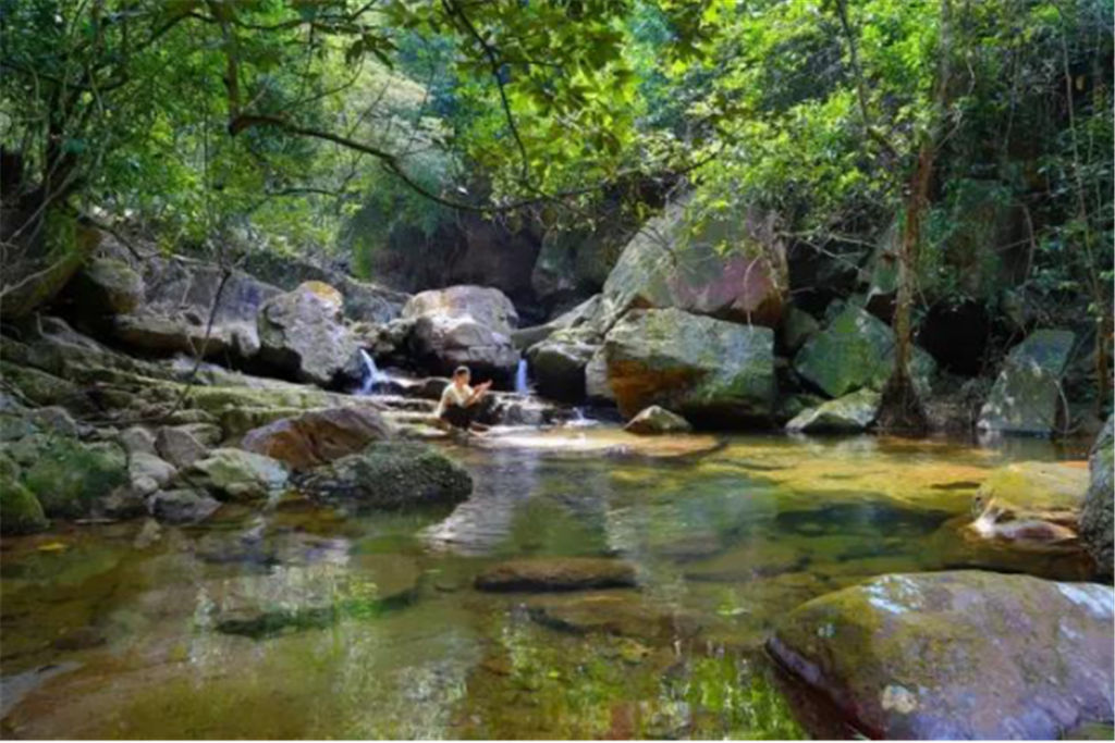 每個(gè)石潭不僅都有著美麗的名字,比如阿蘭灘、日月潭、將軍潭等等,而且每個(gè)石潭都仿佛是一個(gè)天然浴池,大的深達(dá)三、四米,可容上百人同時(shí)戲水;小的如浴盆,只容一兩人入浴。尤其是“仙女池”,更是一個(gè)盤踞其中的天然浴池,清清的水面上常?;\罩著一層淡淡的水霧,平添幾分神秘。