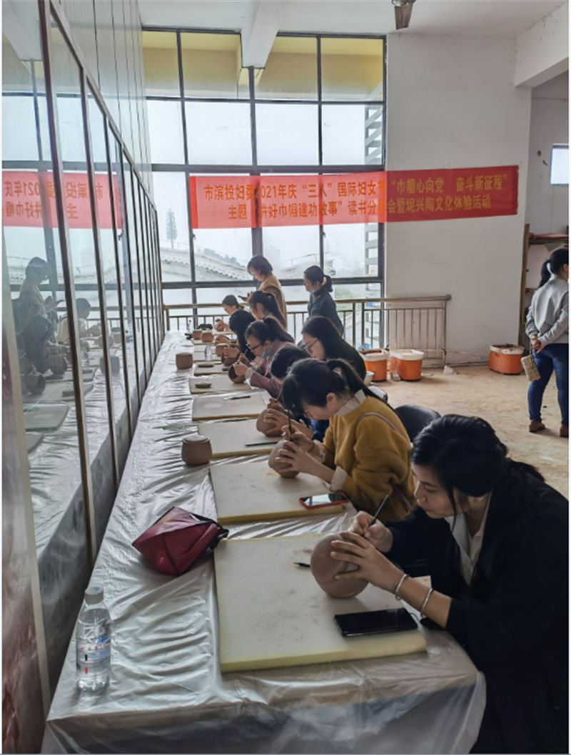 2021年3月8日,欽州市濱海新城投資集團(tuán)有限公司婦委會圍繞“巾幗心向黨,奮斗新征程”主題,組織開展2021年慶“三八”國際勞動婦女節(jié)“講好巾幗建功故事”讀書分享會暨坭興陶文化體驗活動,活動在欽州方圓陶瓷歷史文化館舉行。