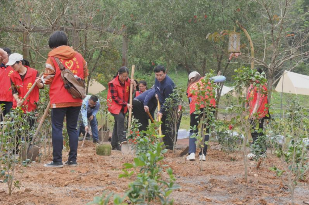 活動現場,全體人員積極投身于添綠行動中,揮鍬鏟土、扶苗填土、提水澆灌,大家分工協(xié)作、相互配合、熱情高漲。經過2個小時緊張的勞動,一排排新栽種的桂花、山茶花樹苗亭亭玉立,展現勃勃生機,為初春的景區(qū)大地增添了絲絲活力。