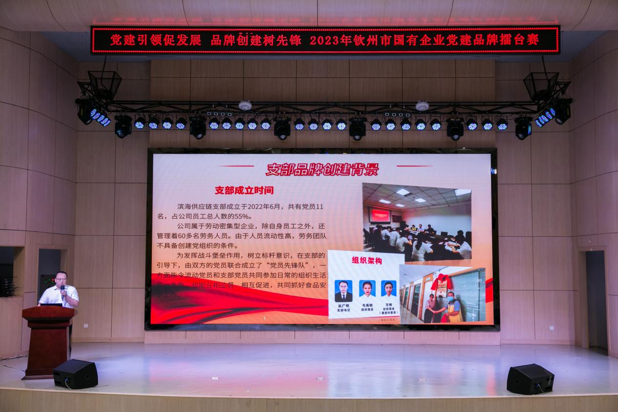 7月14日,由市委組織部、市國資委聯(lián)合舉辦的“黨旗引領(lǐng)促發(fā)展 品牌創(chuàng)建樹先鋒”2023年欽州市國有企業(yè)“十大黨建品牌”擂臺賽在市圖書館三樓報告廳舉行。本次擂臺賽,有市直、各縣(區(qū))等13個單位參加。經(jīng)過激烈角逐,集團公司黨委下屬供應(yīng)鏈公司黨支部參賽的黨建品牌“黨旗引領(lǐng),食安先鋒 ”,被評為欽州市國有企業(yè)“十大黨建品牌”。