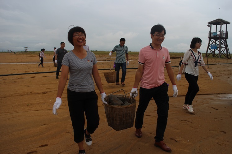 風雨停歇之時,第一、二黨支部全體黨員捋起袖子,提起垃圾筐,在黃金浴場上進行“拉網(wǎng)式”清撿垃圾活動?;顒又?,大家分工協(xié)作,團結(jié)互助,忙得不亦樂乎,現(xiàn)場一片熱火朝天的景象。沙灘上的垃圾大多為煙蒂、石頭、礦泉水瓶等,考慮群眾在沙灘上大都赤腳走路,為了群眾的安全,黨員們將沙灘上的貝殼也都一并清撿,清除貝類劃傷的風險。其中一位老黨員向大家說到:“大家一定不要覺得清潔活動就只是單純地撿垃圾,我們撿的可都是‘黃金’啊,別看小小一個煙蒂,我們把它撿起來了,環(huán)境就美了,群眾就會更加自覺了,那么誰也不舍得扔下手中的這枚‘黃金’了。所以,我們黨員今天的清潔行動不僅是推行群眾文明出行的理念,更是引導(dǎo)群眾自覺保護環(huán)境,關(guān)愛自然,從而讓清潔、環(huán)保成為每個人的責任。”老黨員看似平淡的話語,卻是對我們的諄諄教導(dǎo),進一步激發(fā)了我們身為一名共產(chǎn)黨員的責任感和使命感,同時也讓我們深刻認識到生態(tài)環(huán)境建設(shè)和保護迫在眉睫。