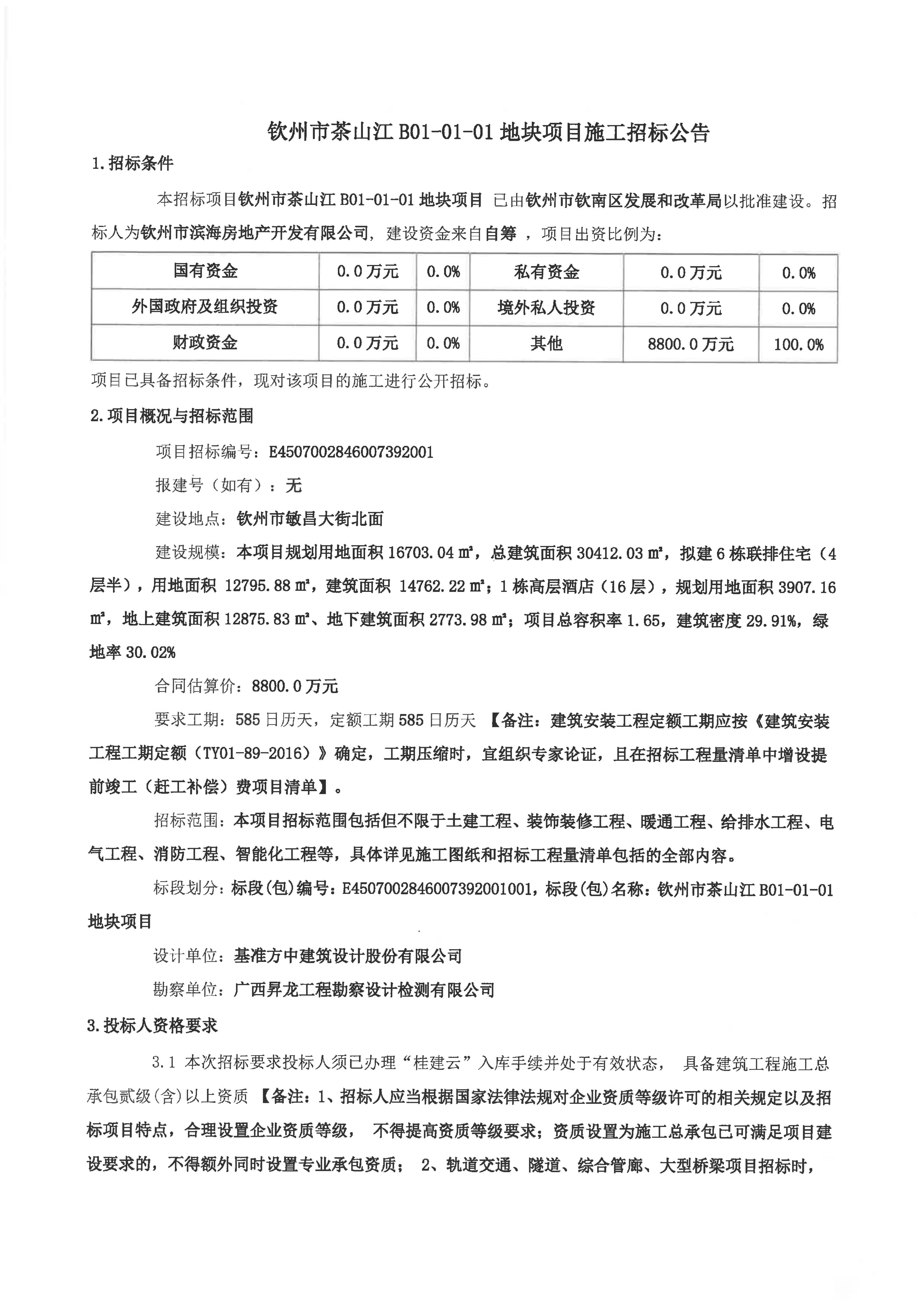 欽州市茶山江B01-01-01地塊項目施工招標公告
