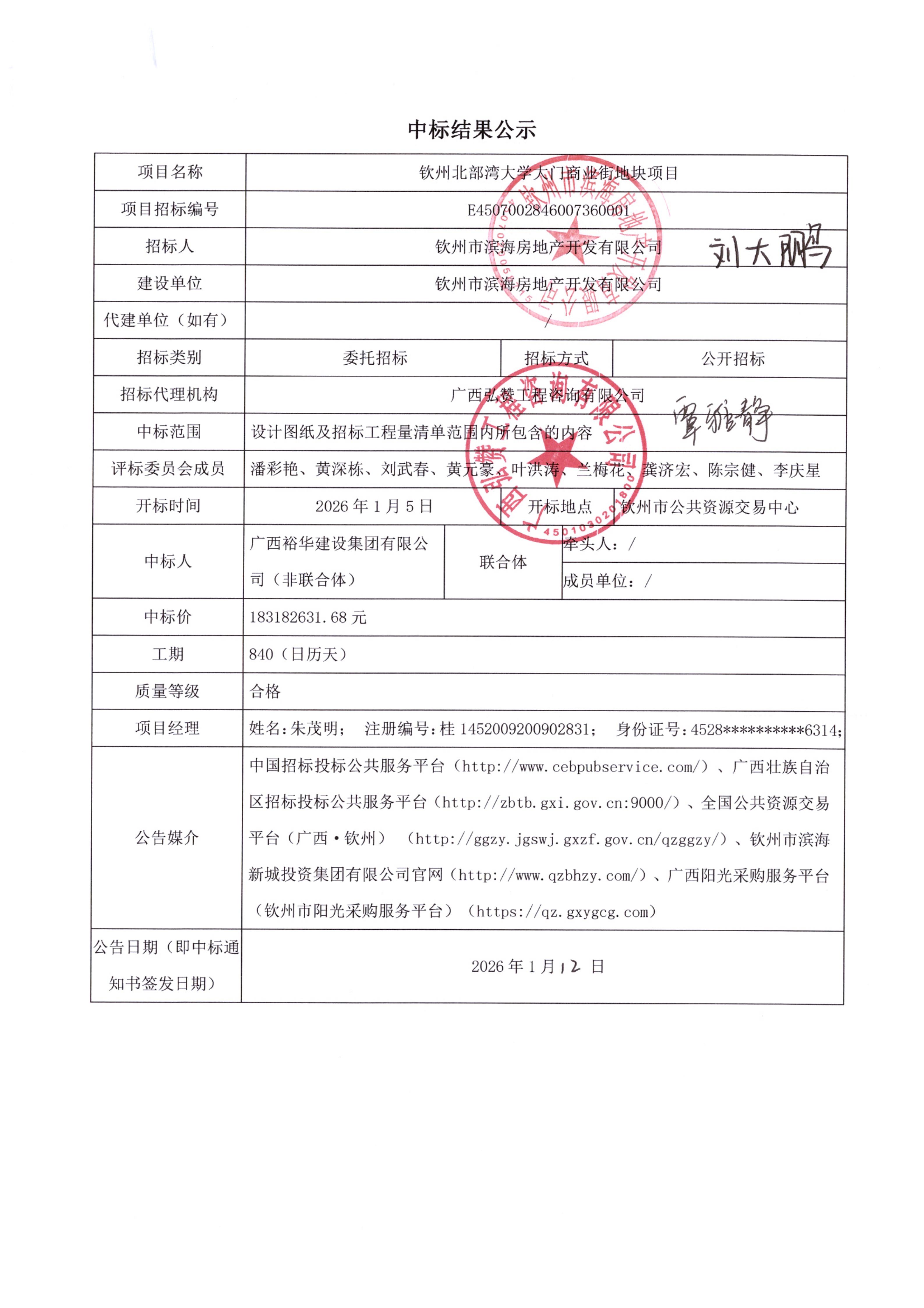 欽州北部灣大學大門商業(yè)街地塊項目(中標結(jié)果公示)