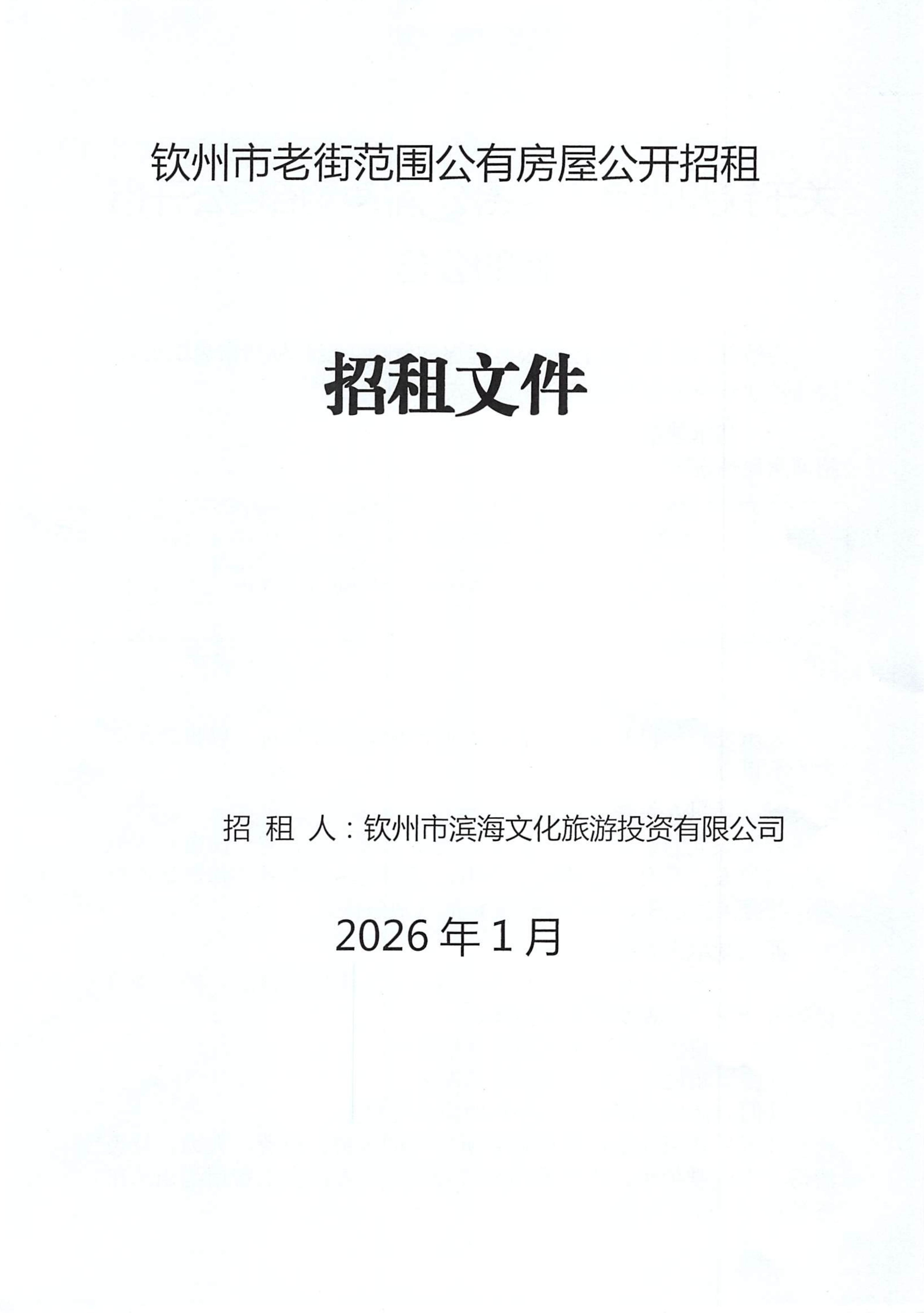 欽州市濱海文化旅游投資有限公司關(guān)于欽州市老街范圍2處房屋公開招租結(jié)果公示