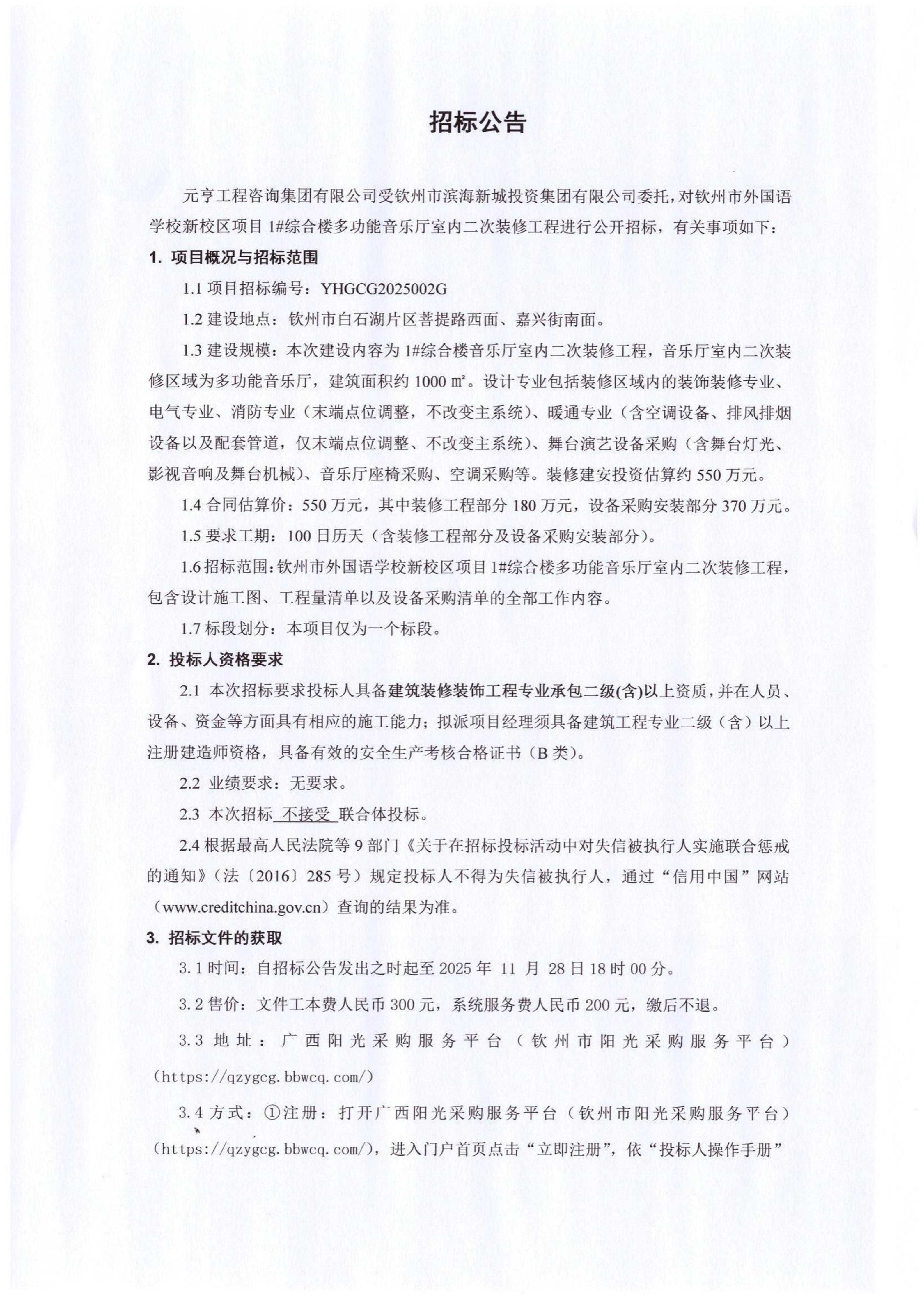 欽州市第二中學(xué)蓬萊校區(qū)一期項(xiàng)目檢測(cè)工程檢測(cè)招標(biāo)公告