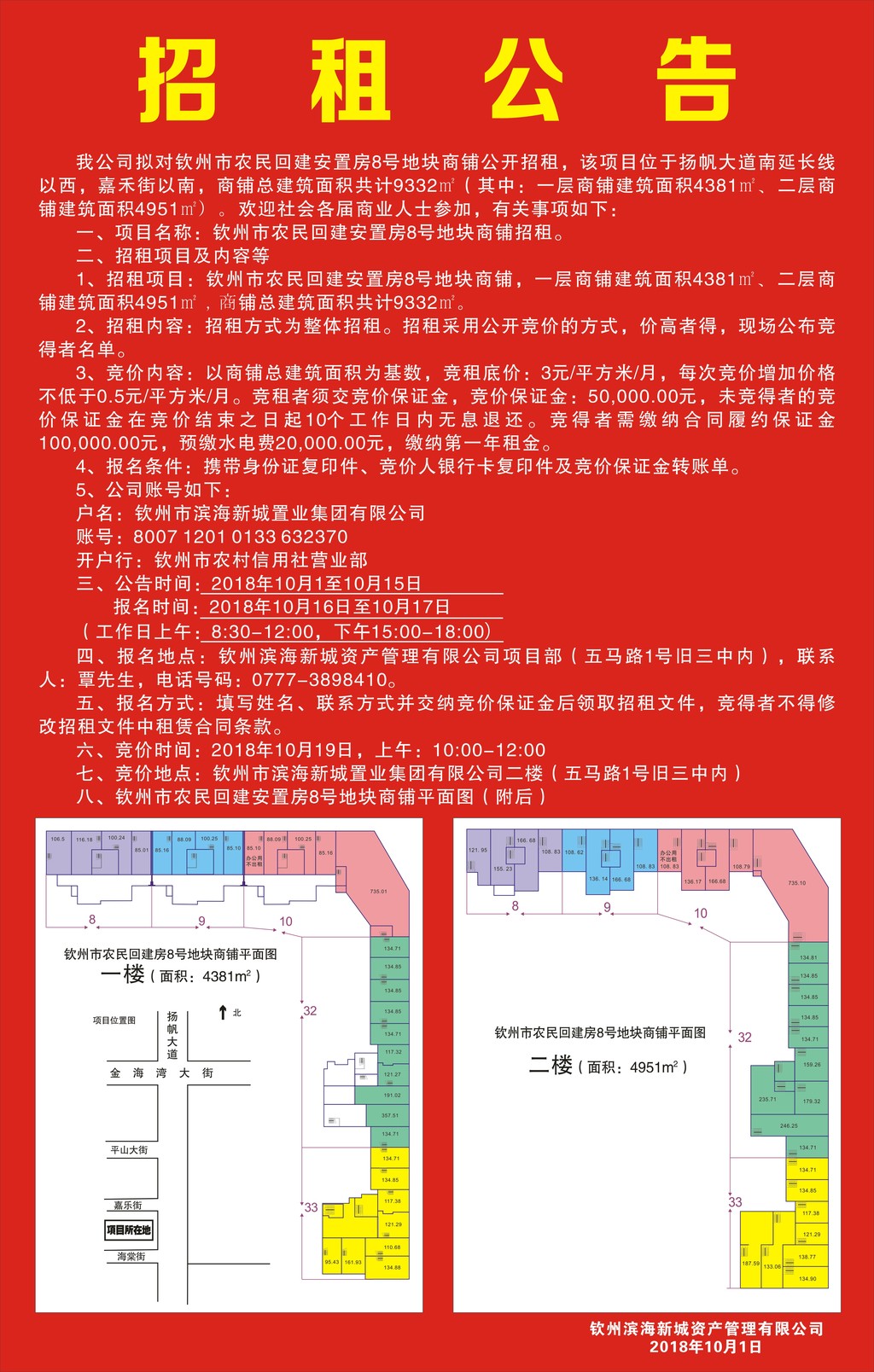 欽州濱海新城資產(chǎn)管理有限公司受欽州市濱海新城置業(yè)集團有限公司委托,對北部灣大學(xué)學(xué)生美食街進行公開招租,歡迎符合條件的競租人參加競租,現(xiàn)將有關(guān)事項公告如下:
