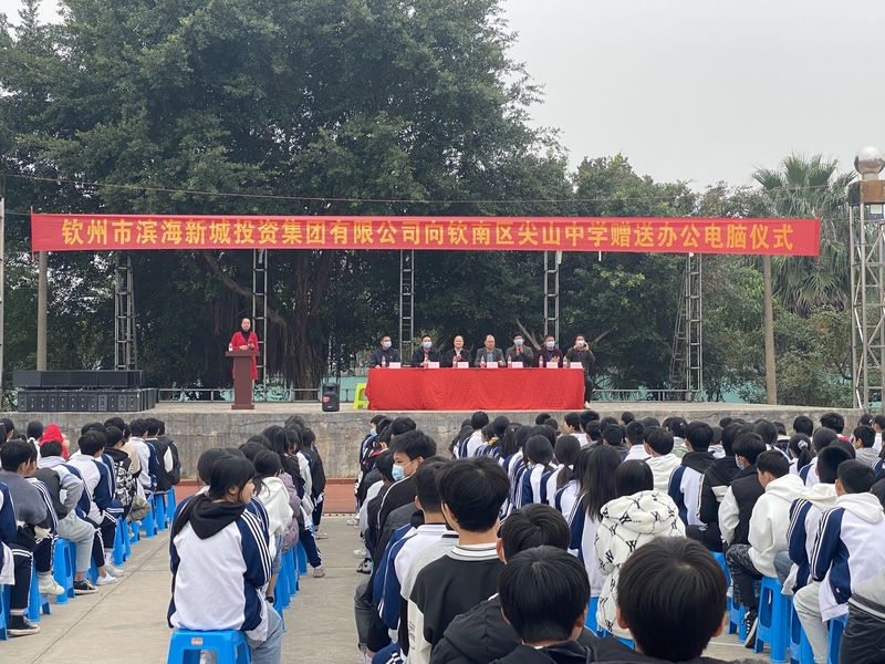 2022年1月13日,集團公司副總經(jīng)理、工會主席楊新棟帶領欽州濱海資產(chǎn)管理有限公司領導到欽南區(qū)尖山中學捐贈一批辦公設備,本次捐贈臺式電腦81臺、音頻設備6套等。