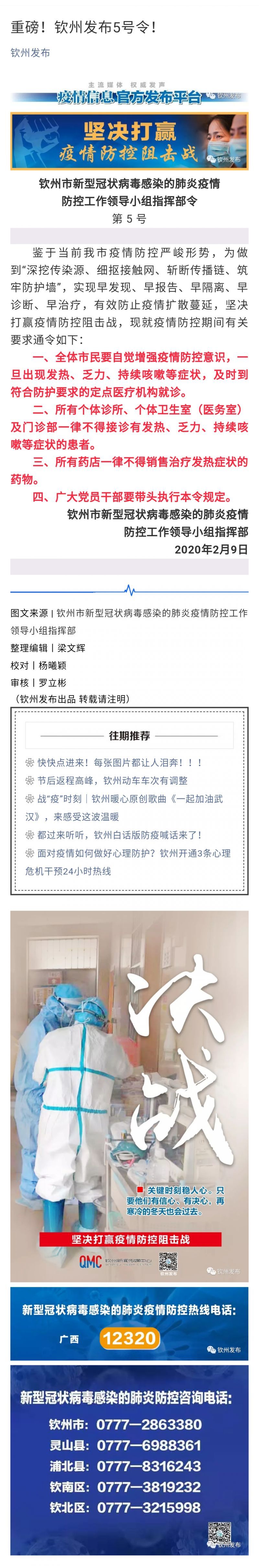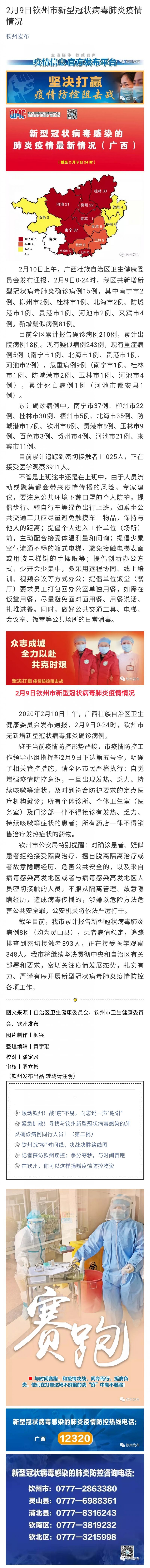 ?2月10日欽州市新型冠狀病毒肺炎疫情情況