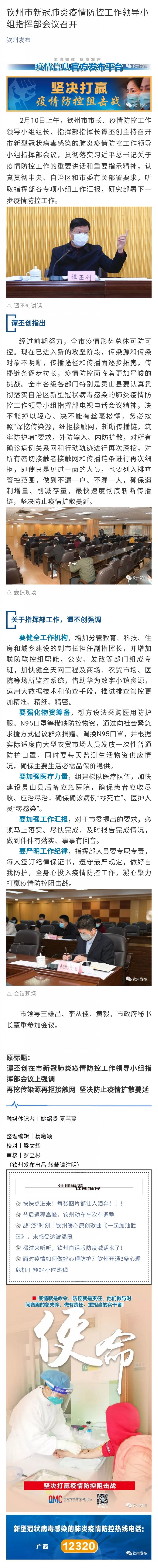 欽州市新冠肺炎疫情防控工作領(lǐng)導(dǎo)小組指揮部會(huì)議召開