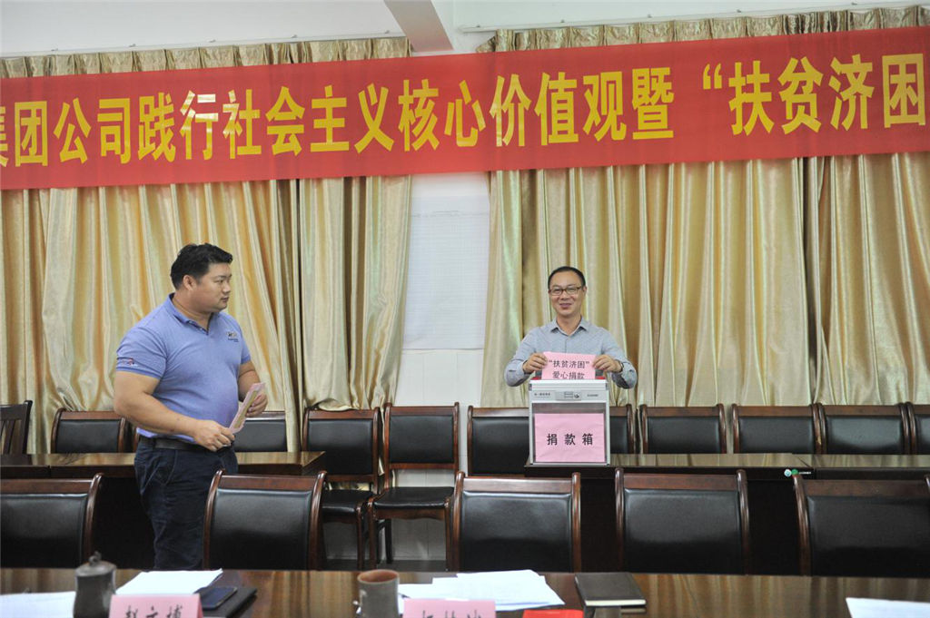 會后,立即開展了“扶貧濟困,扶弱助貧”捐贈活動,集團公司發(fā)動黨員、干部、職工自愿參與扶貧捐贈活動,呼吁全體職工參與到“全國扶貧日”這項意義深遠的活動中來?;顒又?,集團公司主要領(lǐng)導(dǎo)帶頭捐款,干部職工都積極響應(yīng),當(dāng)天籌集到的愛心捐款共計¥8040.00元(人民幣捌仟零肆拾元整),所籌集的捐款將用于公司定點幫扶貧困村、貧困戶的生產(chǎn)生活條件改善、產(chǎn)業(yè)發(fā)展或發(fā)展村集體經(jīng)濟。