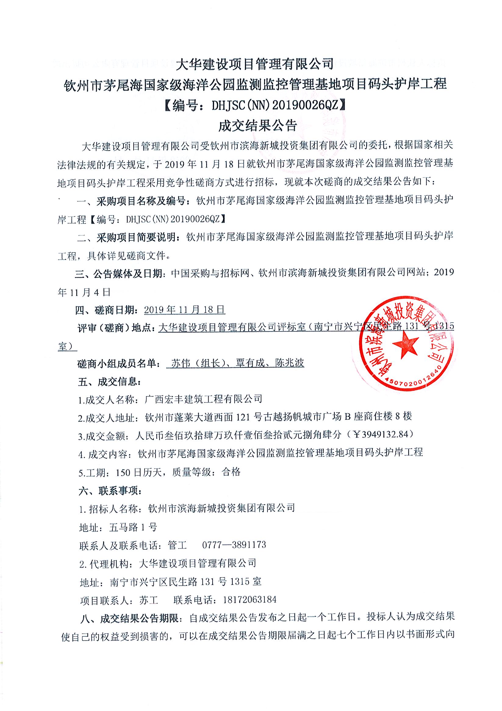 欽州市茅尾海國家級海洋公園監(jiān)測監(jiān)控管理基地項目碼頭護岸工程-成交結(jié)果公告