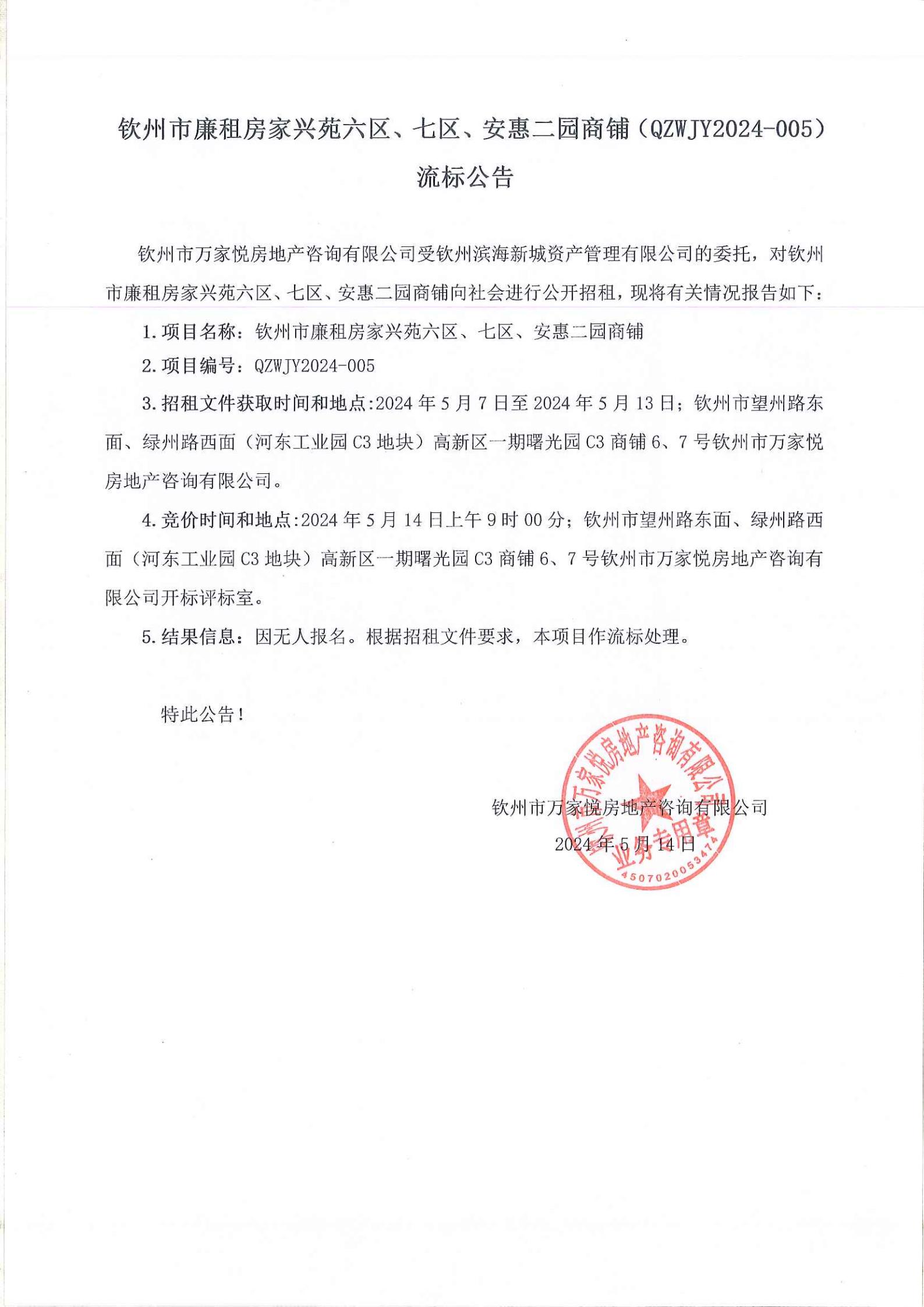 欽州市廉租房家興苑六區(qū)、七區(qū)、安惠二園商鋪流標(biāo)公告