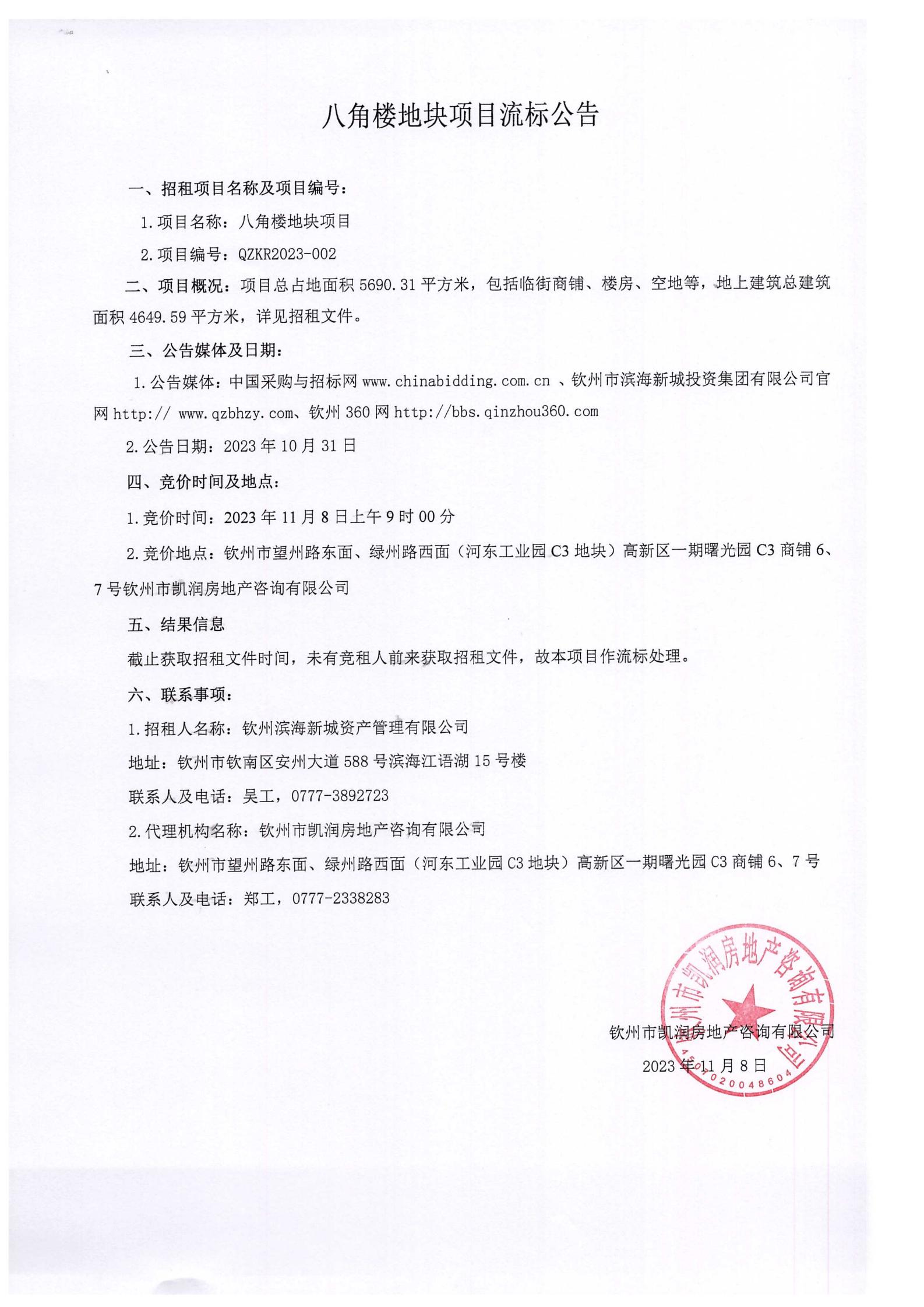 欽州市濱海文化旅游投資有限公司招租結(jié)果公示(占鰲巷67號等五處房屋)
