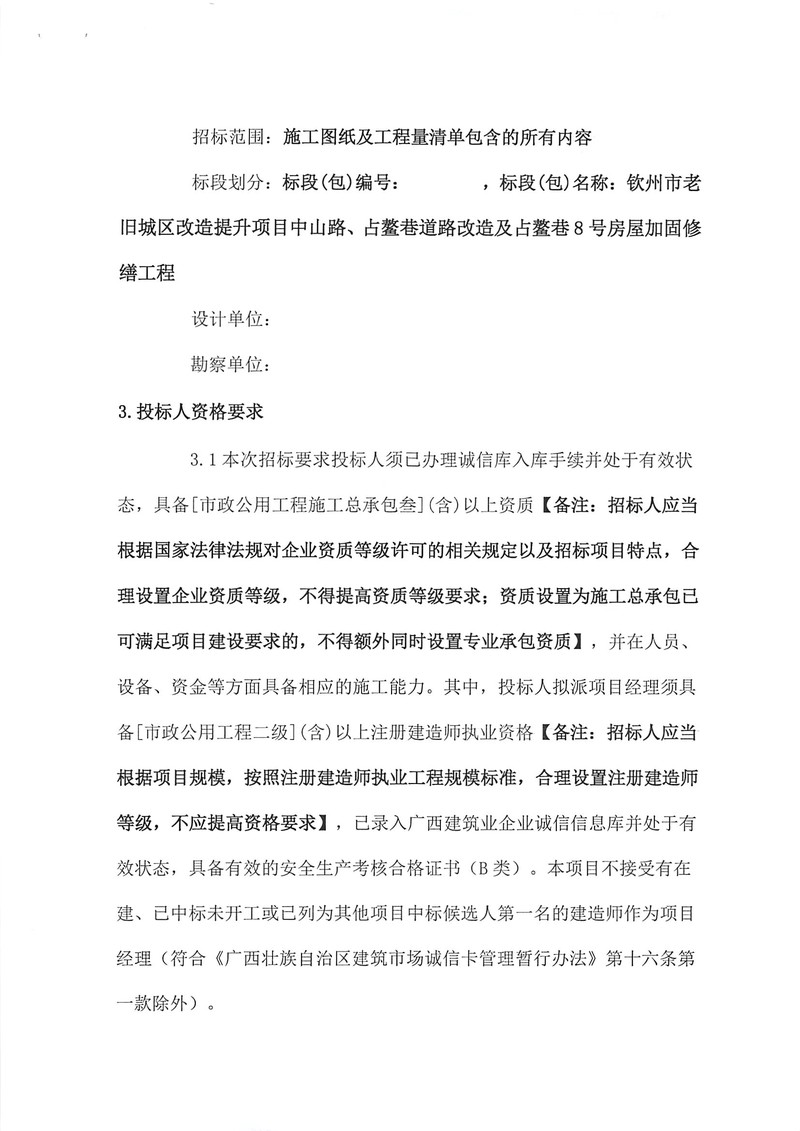 招標公告 -欽州市老舊城區(qū)改造提升項目部分房屋修繕及景觀工程設計-施工總承包(EPC)