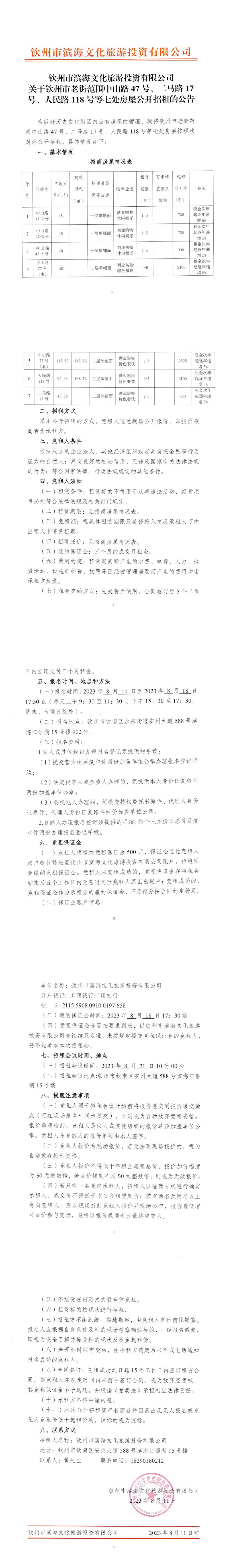 關(guān)于欽州市老街范圍中山路47號、二馬路17號、人民路118號等七處房屋公開招租的公告