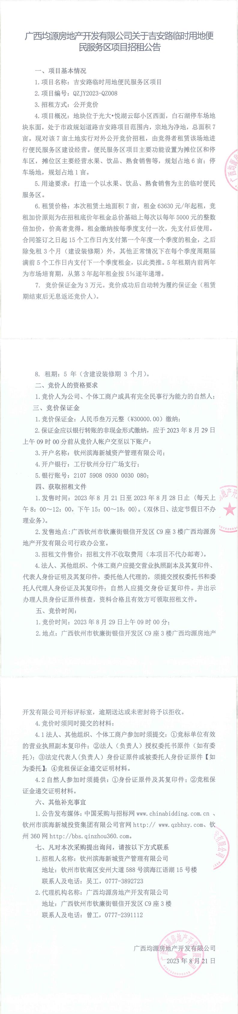 吉安路臨時用地便民服務(wù)區(qū)項目招租公告