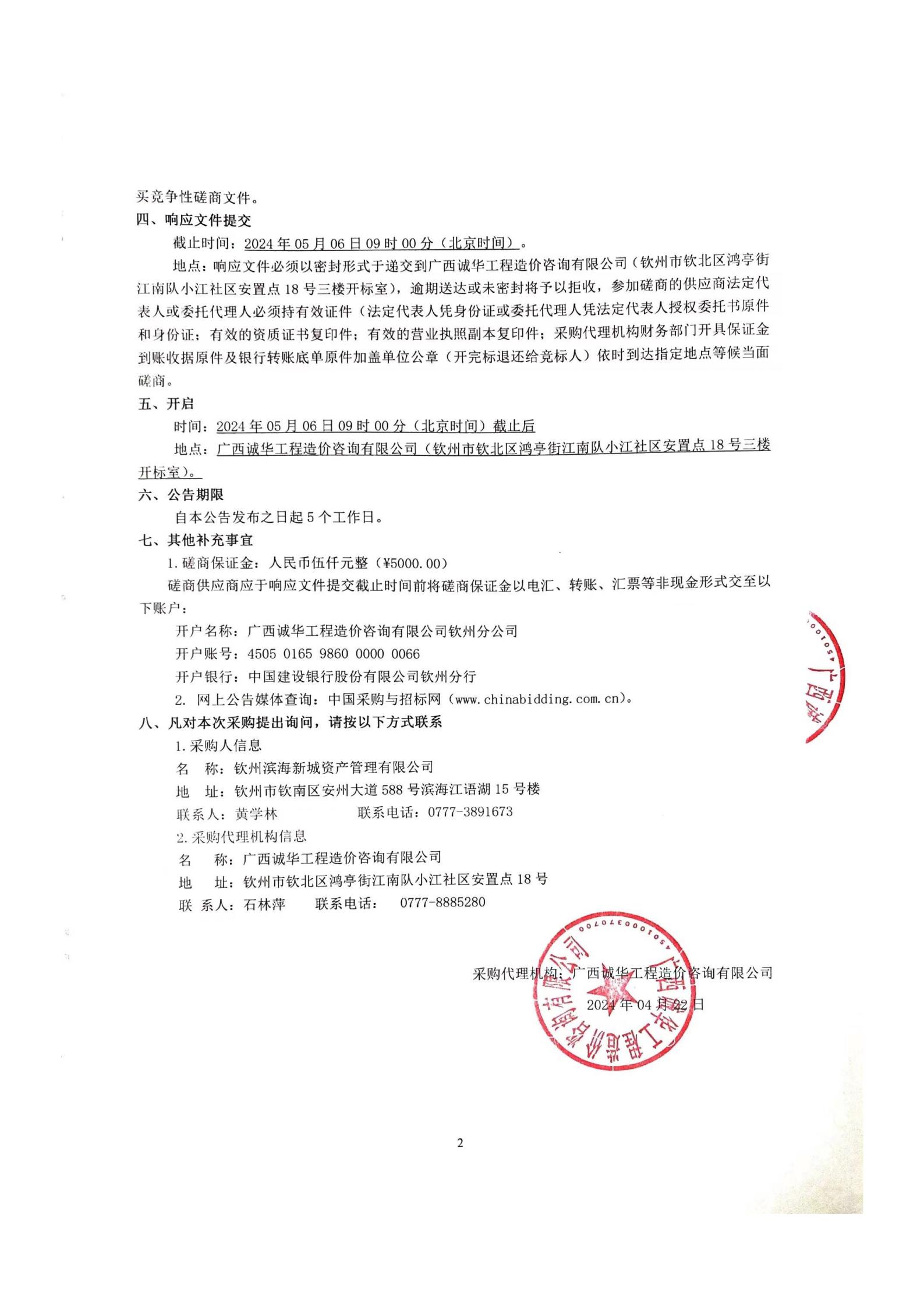 欽州市濱海新城投資集團(tuán)有限公司綜合展示廳競爭性磋商公告