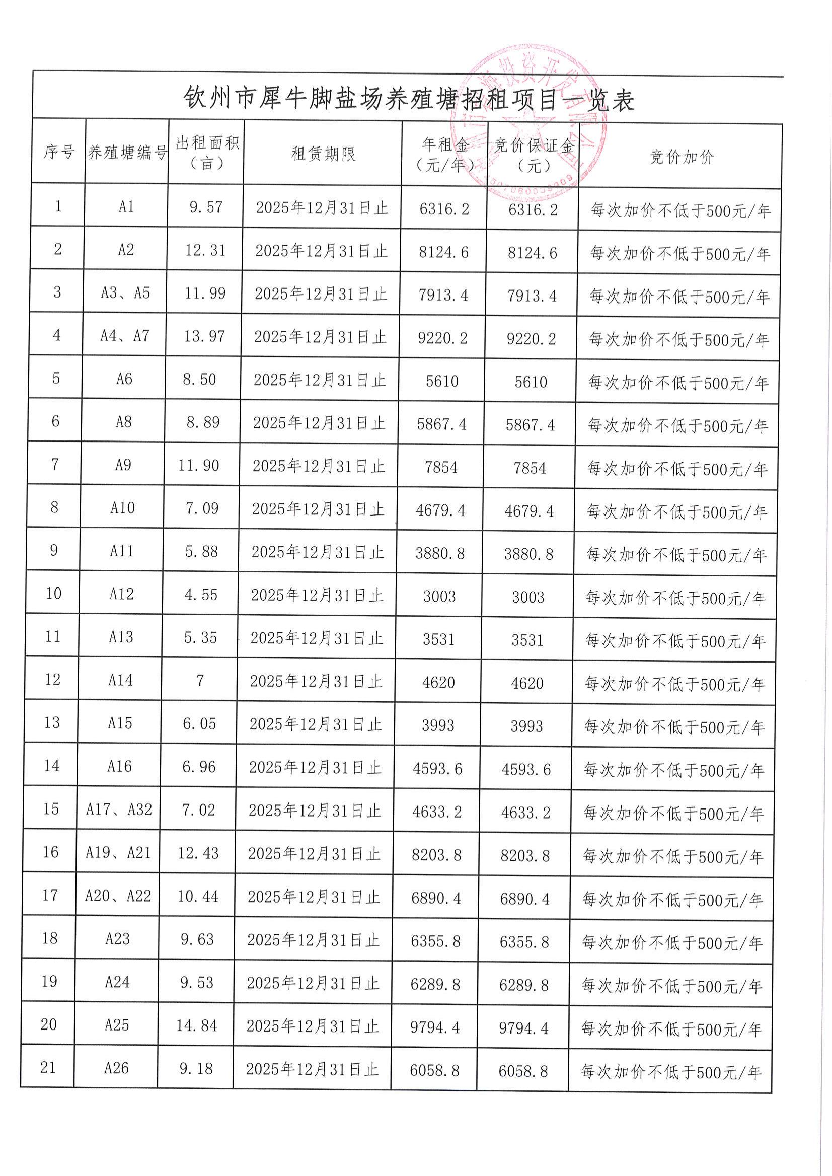 關(guān)于犀牛腳鹽場養(yǎng)殖塘公開招租的公告