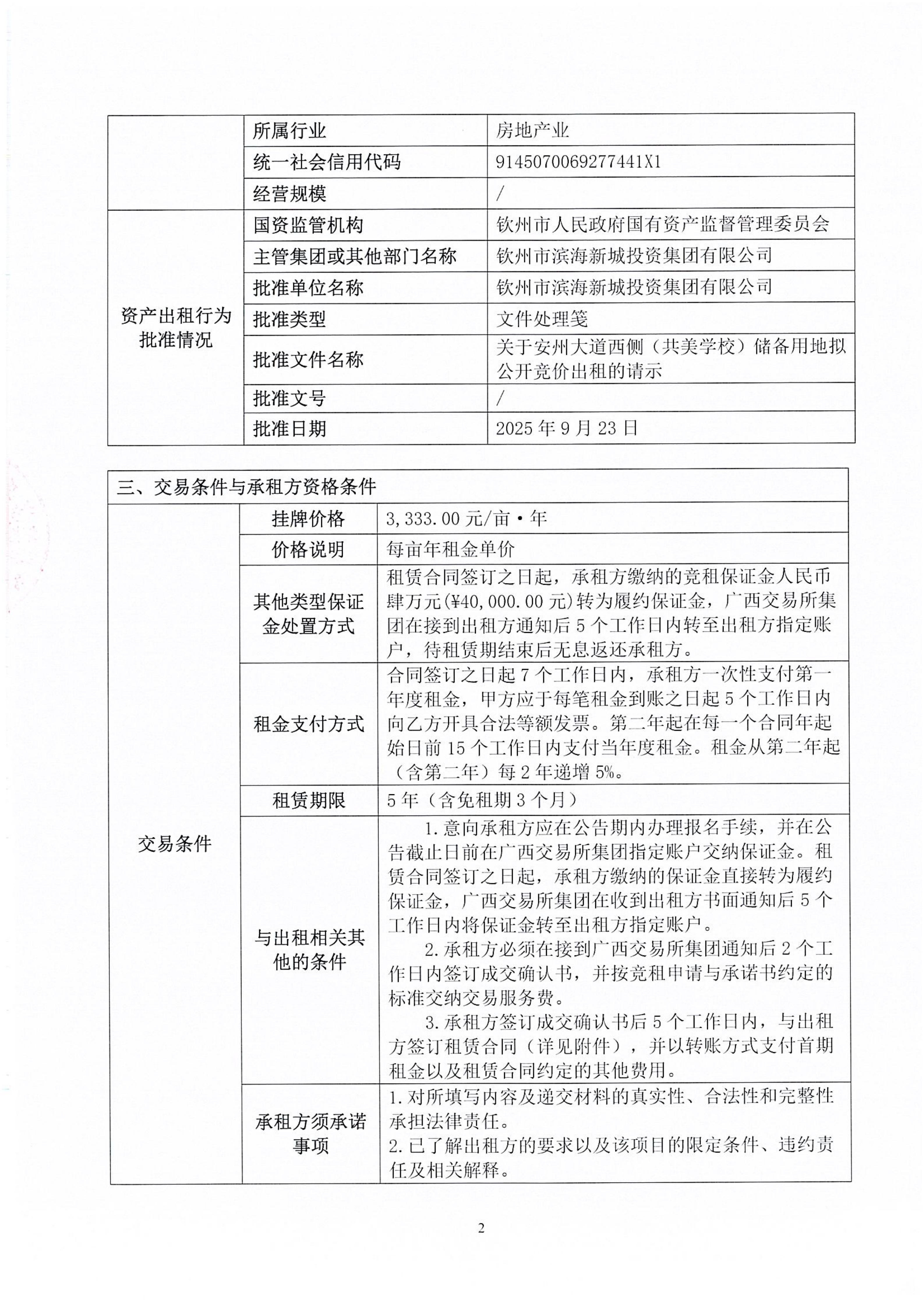 欽州市欽南區(qū)安州大道西側(cè)(共美學(xué)校)儲備用地公開招租項(xiàng)目