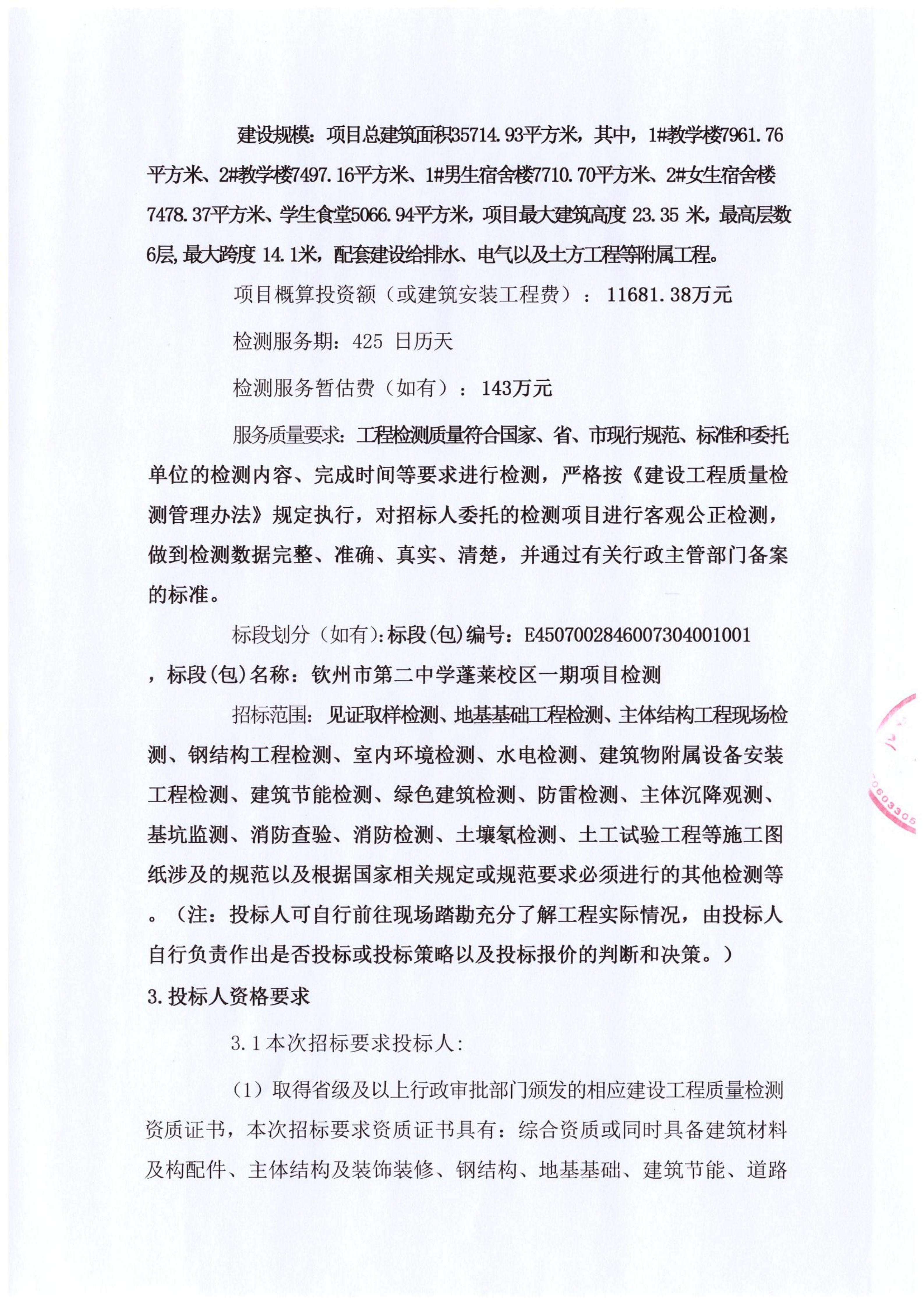 欽州市第二中學(xué)蓬萊校區(qū)一期項(xiàng)目檢測工程檢測招標(biāo)公告